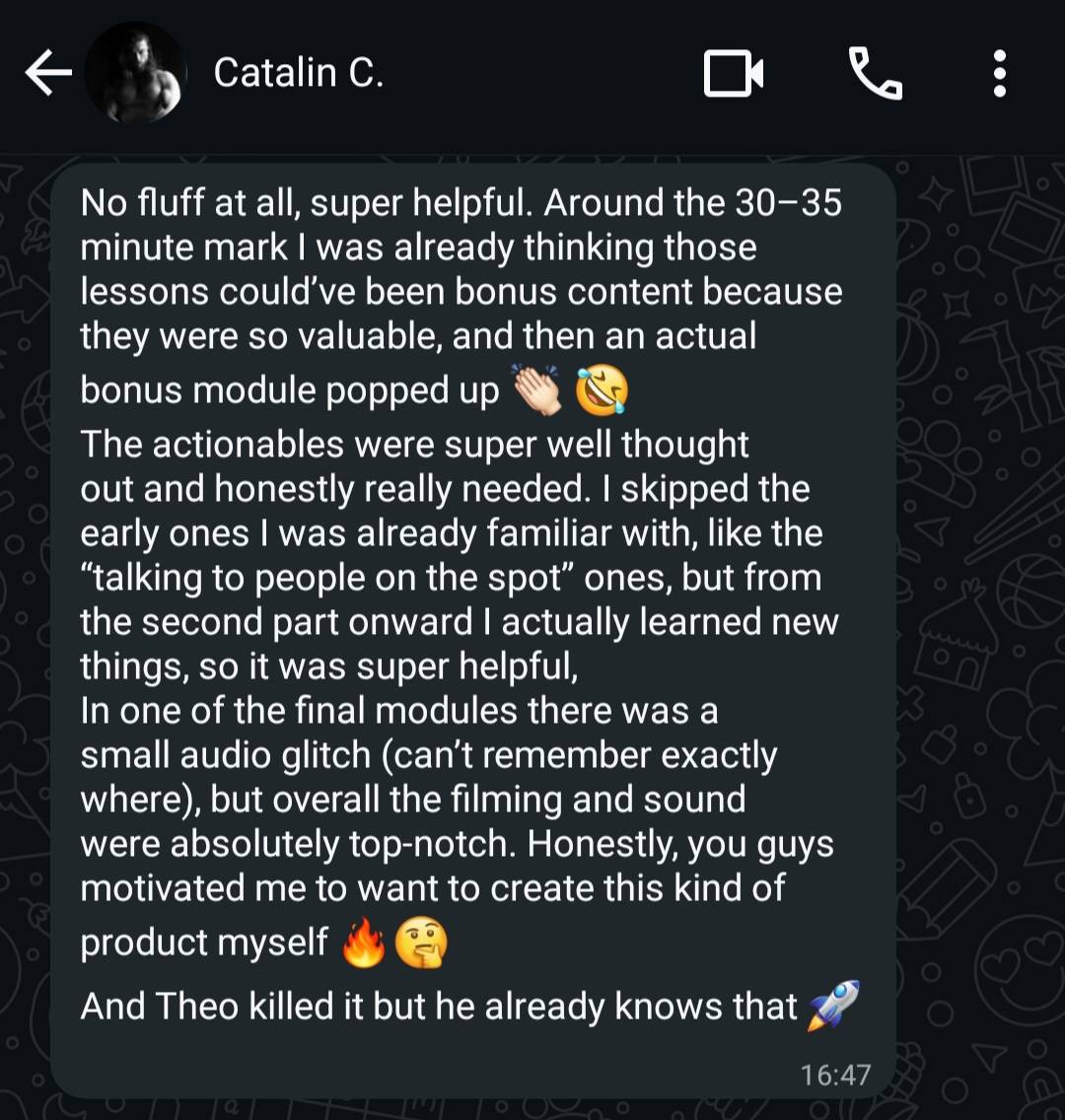 “It’s short, actionable, and insanely effective. Even as a non-native speaker, I now communicate clearly with clients, family, and on camera. Honestly, Theo should raise the price.”